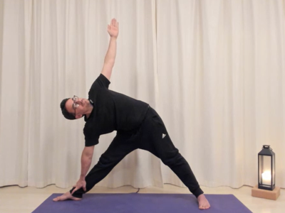20 minutes de postures, 5 minutes de relaxation, 5 minutes de pranayama.