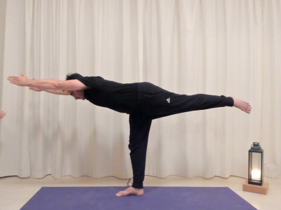 On débute avec un pranayama: ujjayi anuloma, puis on enchaîne avec des postures toniques et on termine par une relaxation.