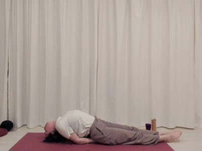 Installez-vous confortablement allongé.e sur le dos, en shavasana, avec couverture et coussins si nécessaire, et laissez-vous guider.